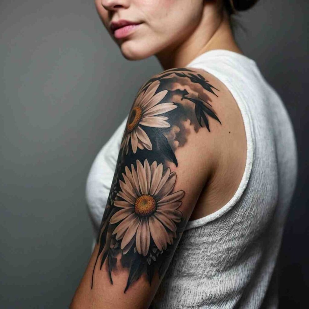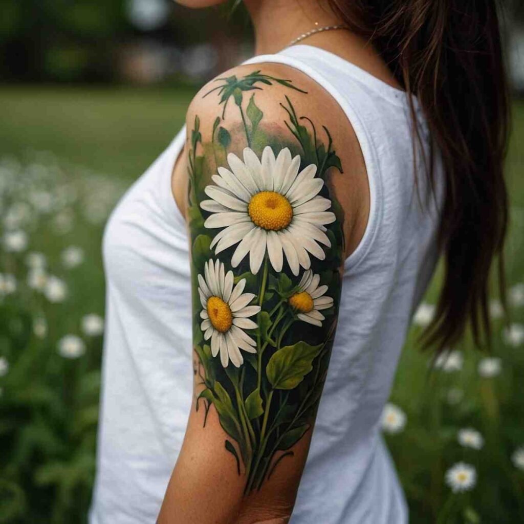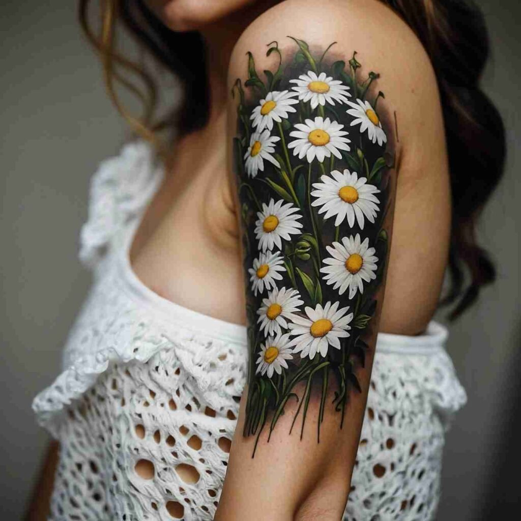Daisies symbolize innocence, purity, and new beginnings. A daisy sleeve tattoo is ideal for those who value simplicity and the beauty of life’s simple joys. This design can be both playful and elegant, making it versatile for any style.