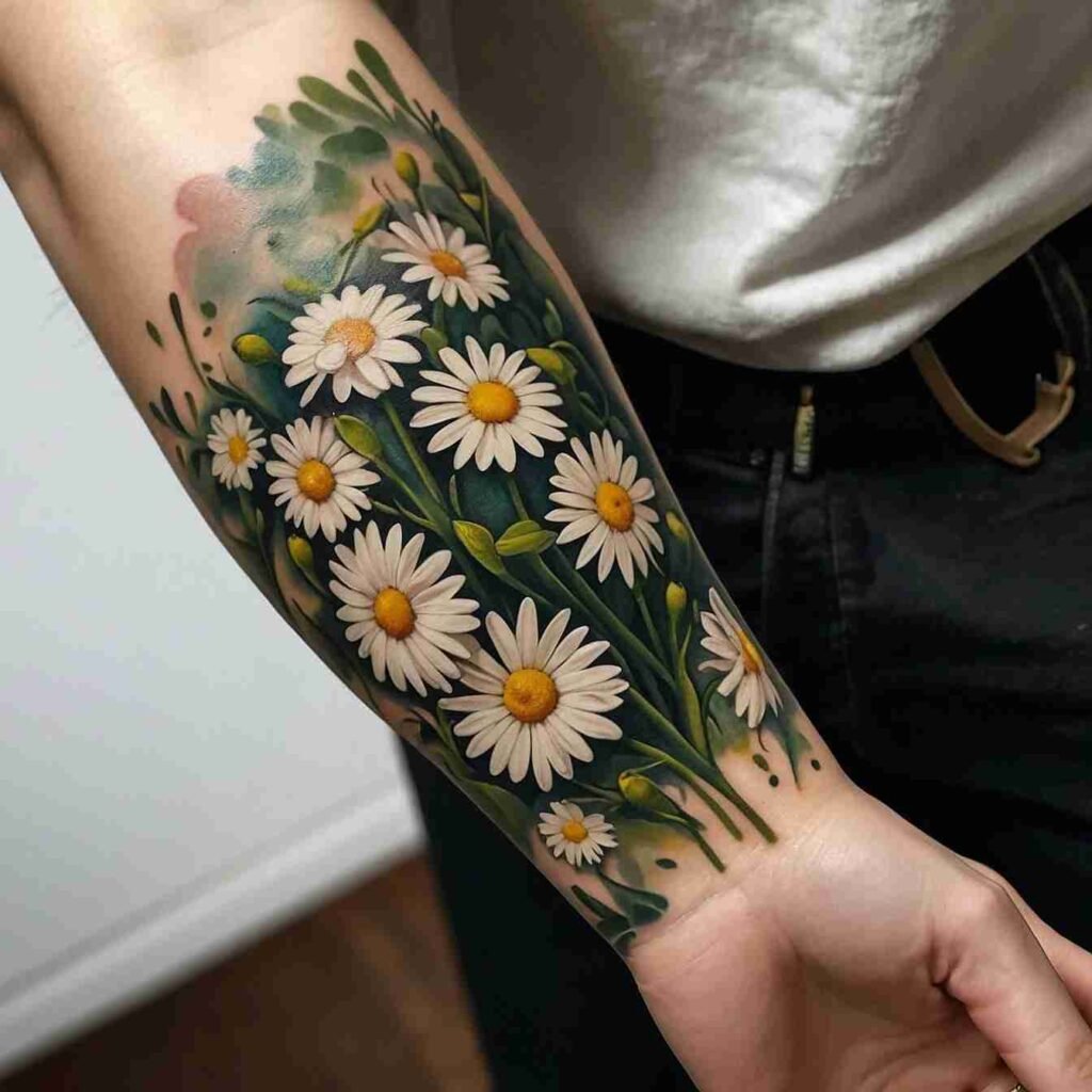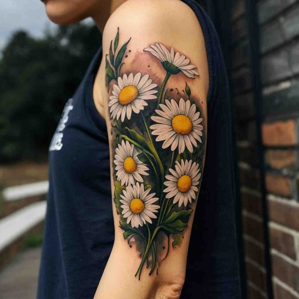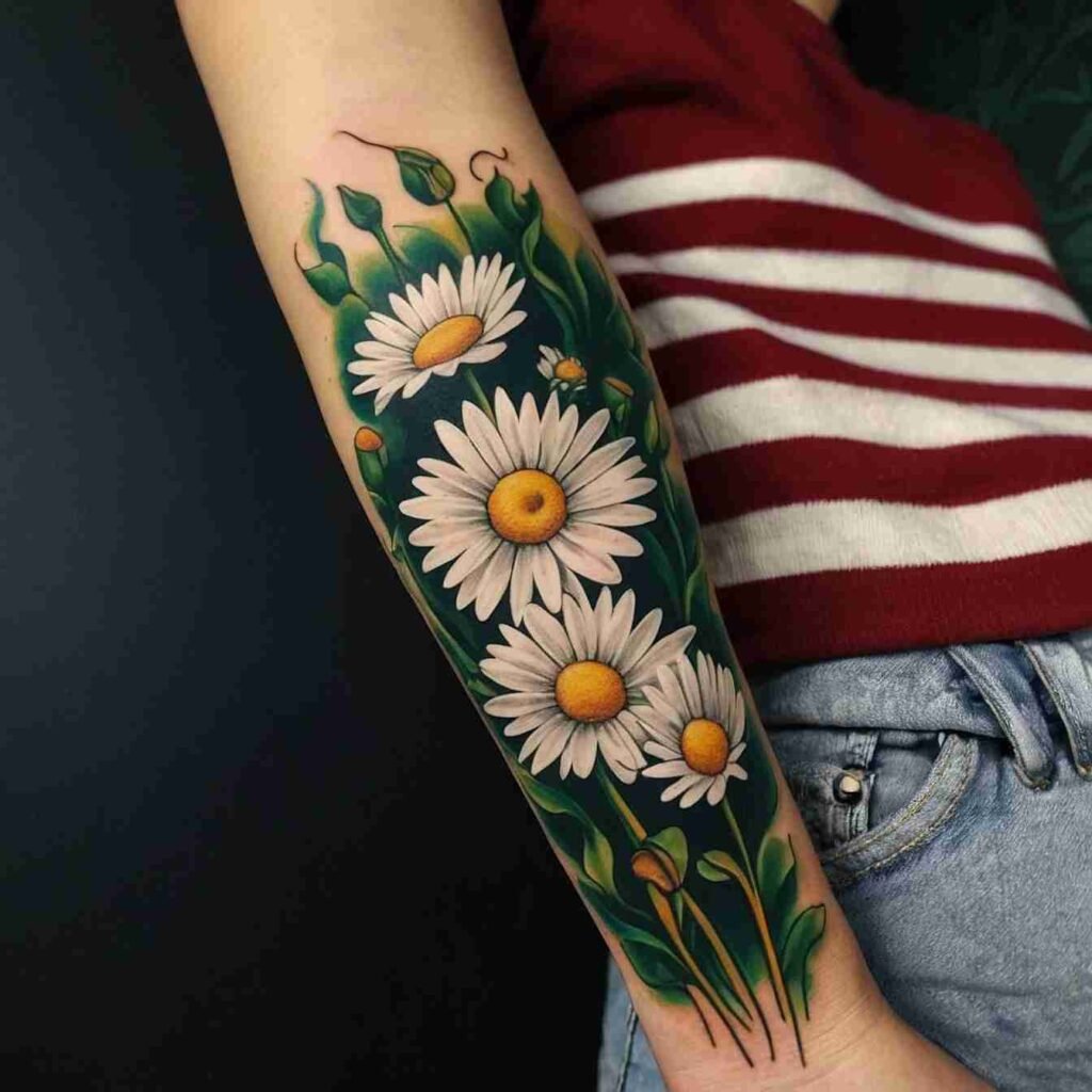 Daisies symbolize innocence, purity, and new beginnings. A daisy sleeve tattoo is ideal for those who value simplicity and the beauty of life’s simple joys. This design can be both playful and elegant, making it versatile for any style.