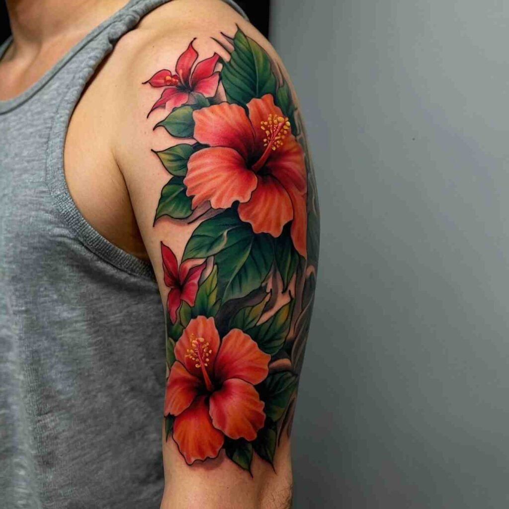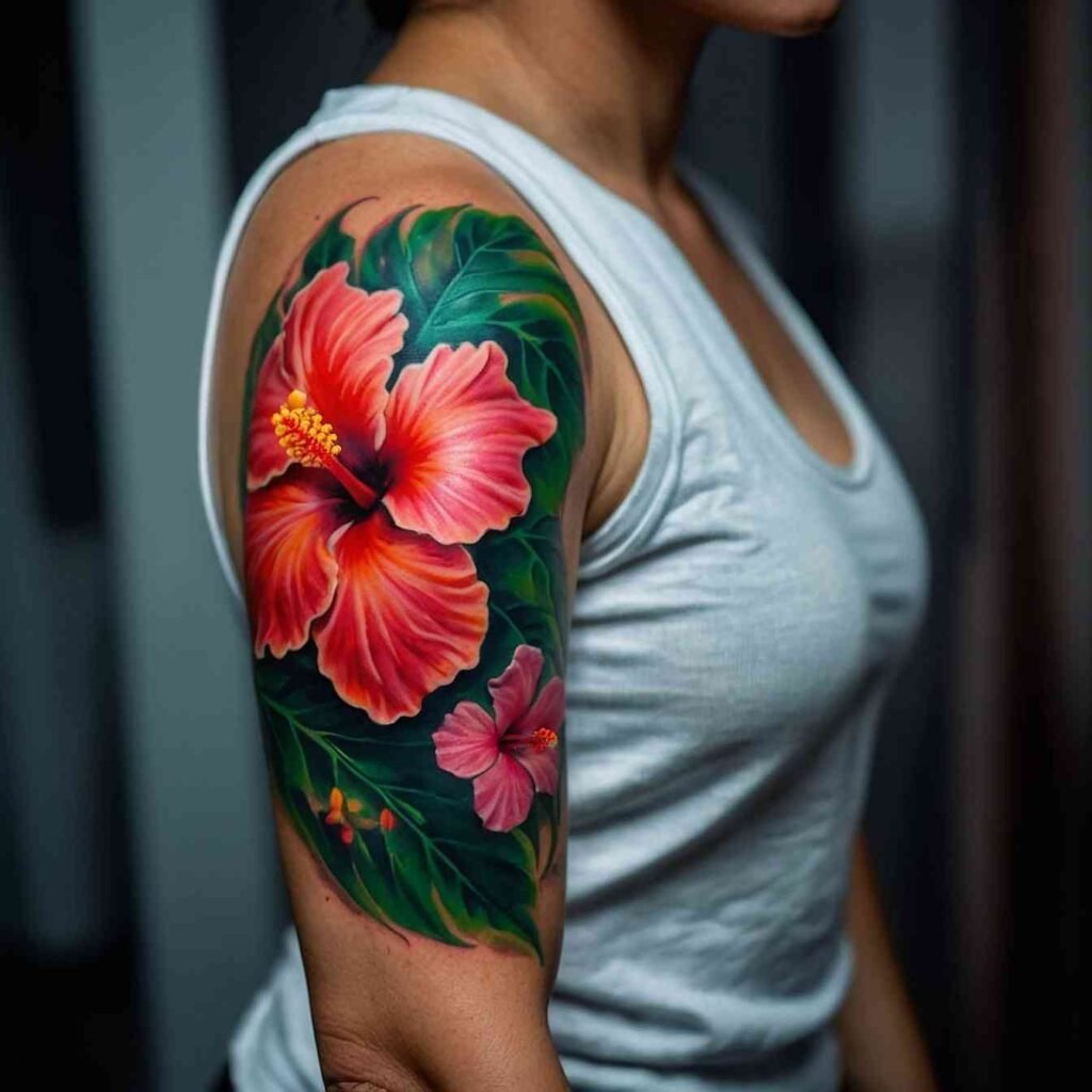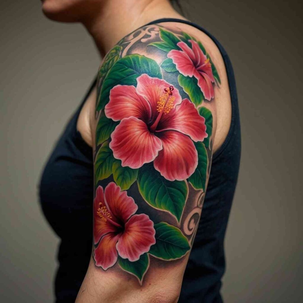 Hibiscus flowers symbolize delicate beauty, femininity, and exotic allure. This tropical flower is perfect for those who want a vibrant, eye-catching sleeve tattoo. The hibiscus can also represent a connection to nature and the tropics.