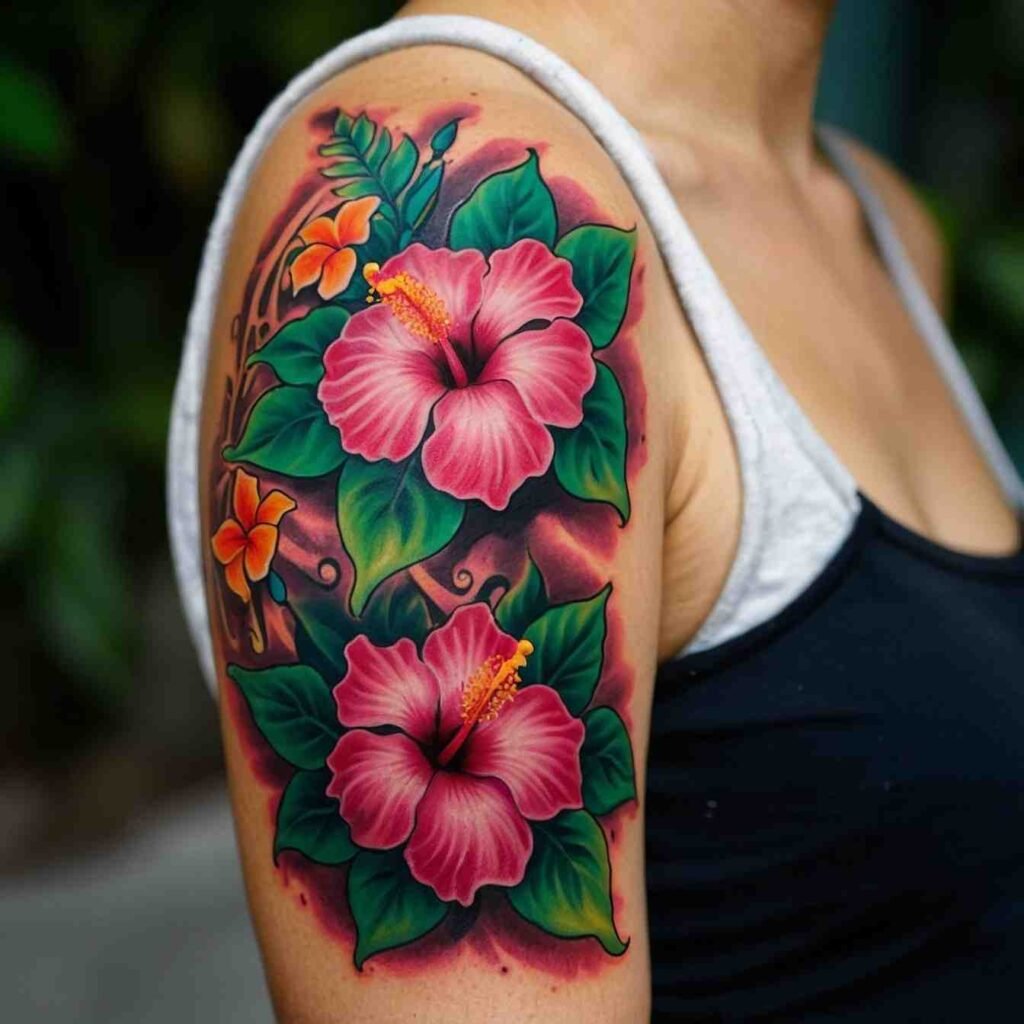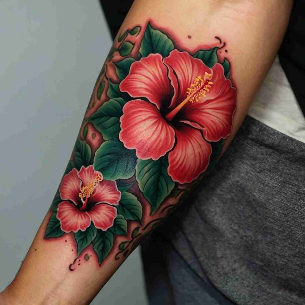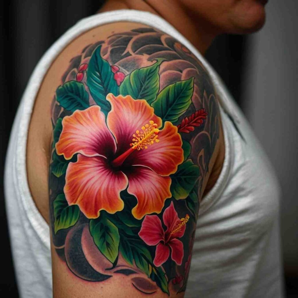 Hibiscus flowers symbolize delicate beauty, femininity, and exotic allure. This tropical flower is perfect for those who want a vibrant, eye-catching sleeve tattoo. The hibiscus can also represent a connection to nature and the tropics.