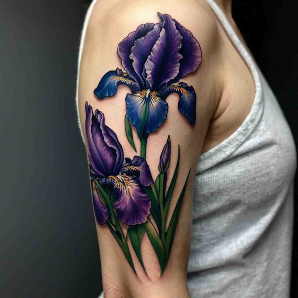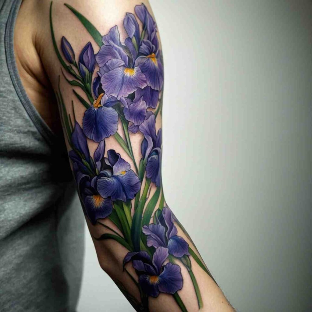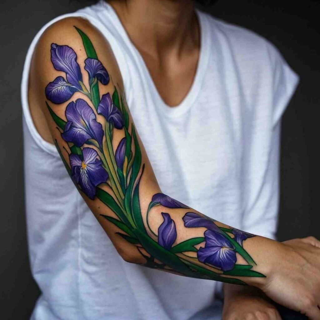 Irises symbolize wisdom, hope, and trust. An iris sleeve tattoo can be a meaningful choice for those who value these qualities. The deep blue or purple colors of the iris add depth and richness to the design.
