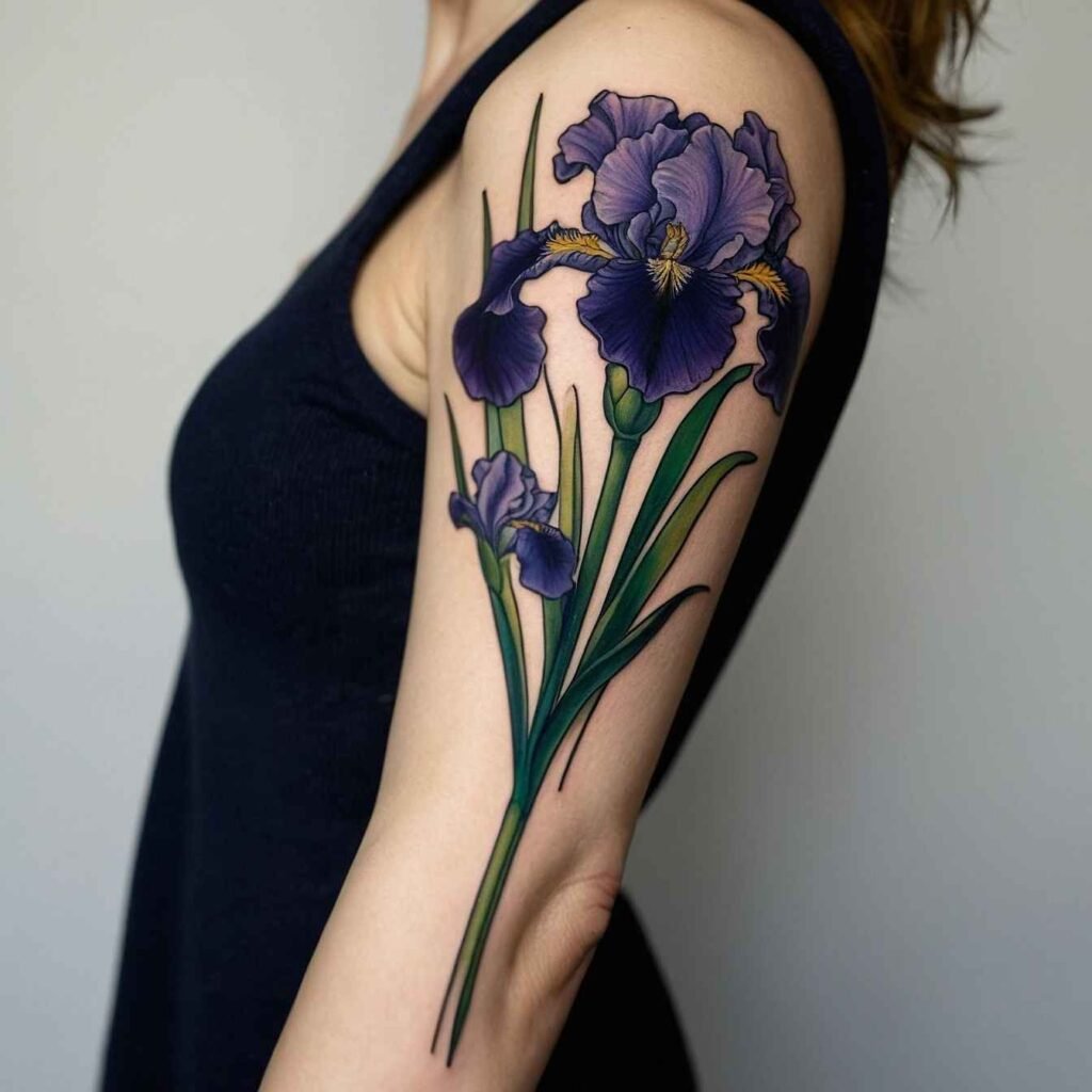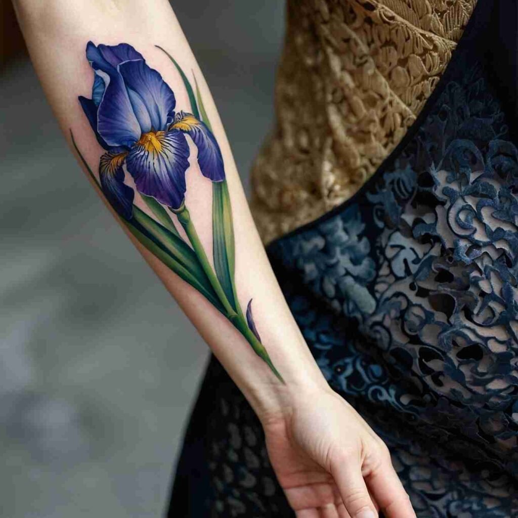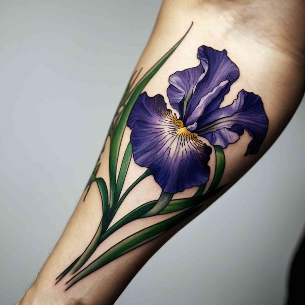 Irises symbolize wisdom, hope, and trust. An iris sleeve tattoo can be a meaningful choice for those who value these qualities. The deep blue or purple colors of the iris add depth and richness to the design.