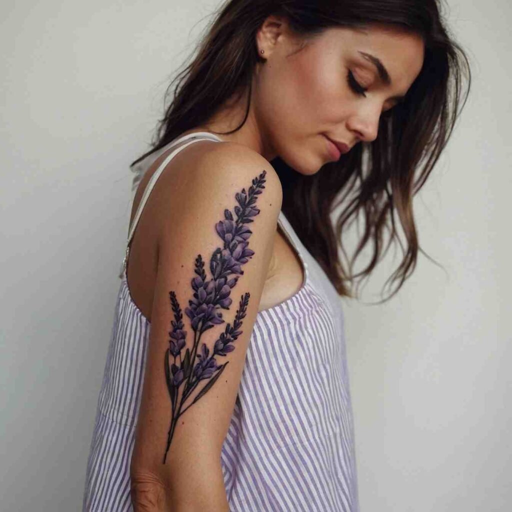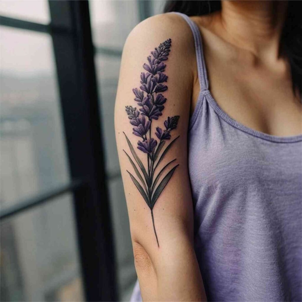 Lavender is known for its calming properties and symbolizes tranquility, peace, and healing. A lavender sleeve tattoo can serve as a reminder to stay calm and centered, even in difficult times. The soft purple hues add a touch of serenity to the design.