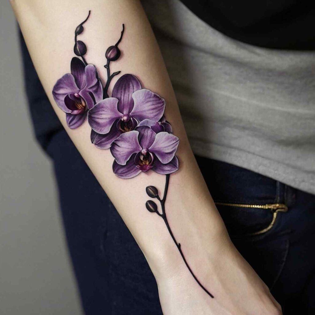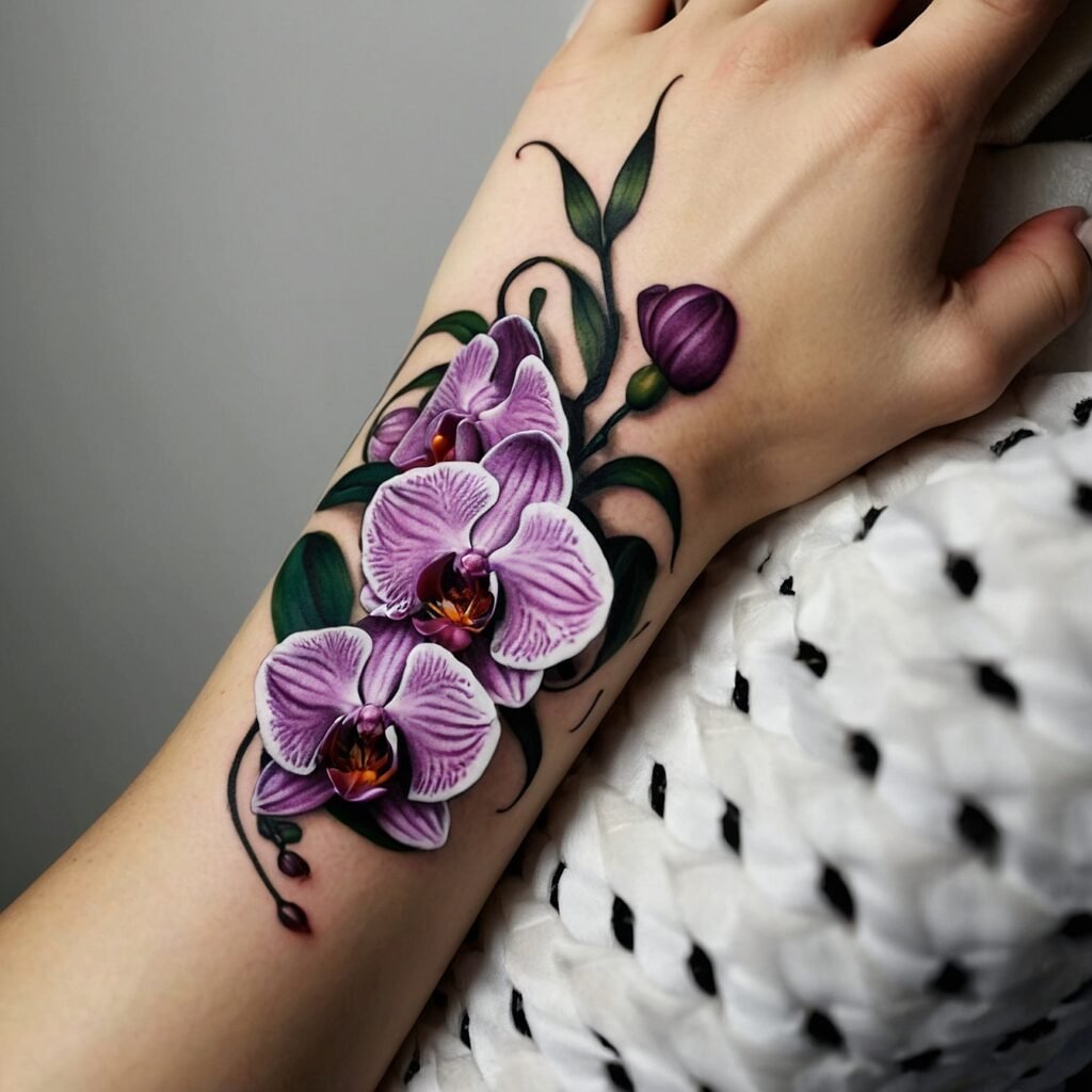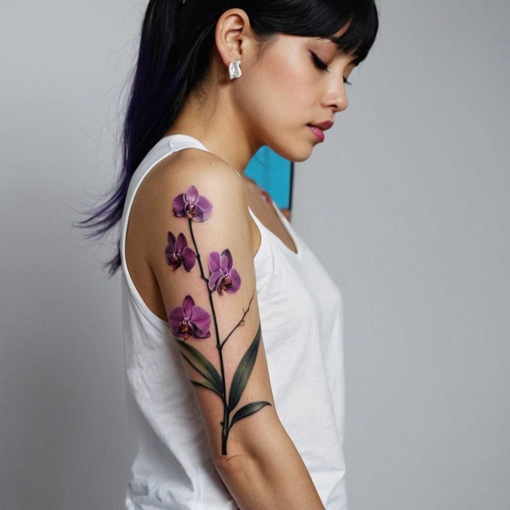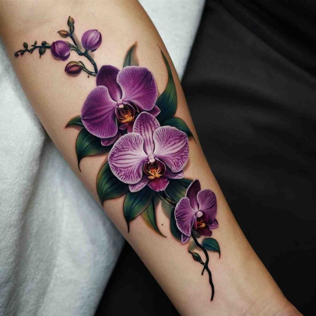 Orchids are symbols of luxury, beauty, and strength. They are often associated with love and elegance. An orchid sleeve tattoo can be a sophisticated choice, representing refined beauty and resilience.