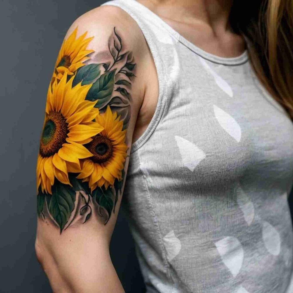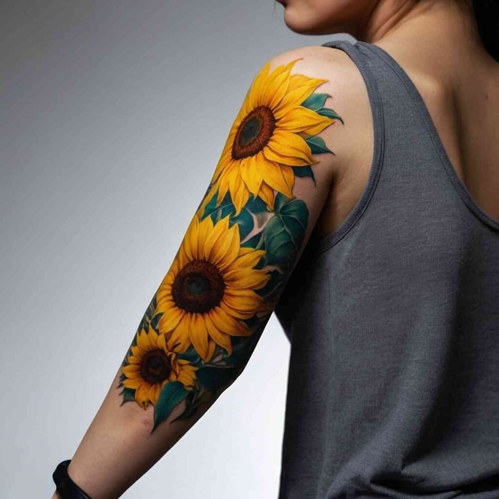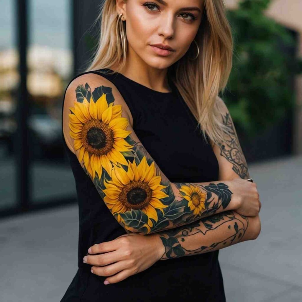 Sunflowers represent positivity, warmth, and happiness. A sunflower sleeve tattoo is perfect for those who want to carry a symbol of sunshine and joy with them. The vibrant yellow petals make this tattoo stand out, spreading positive vibes.