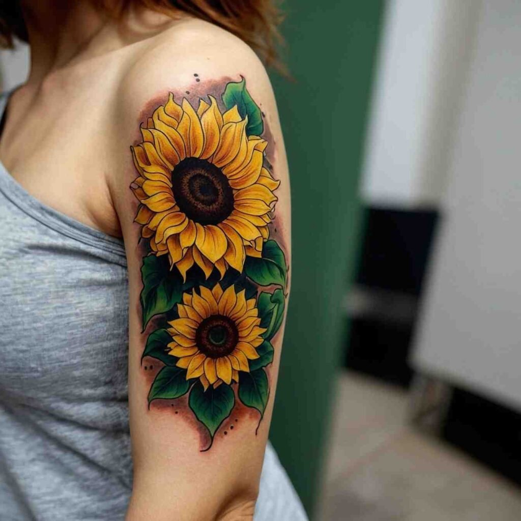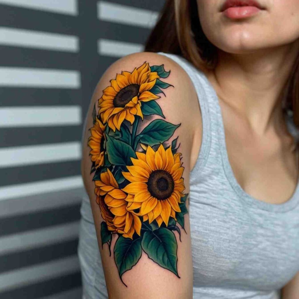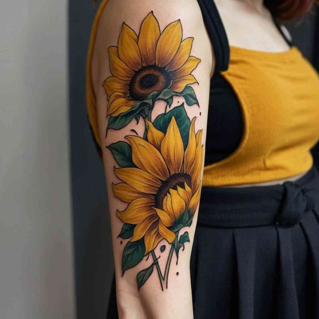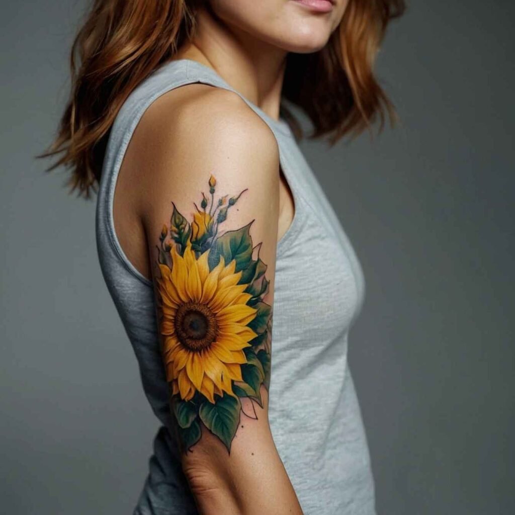 Sunflowers represent positivity, warmth, and happiness. A sunflower sleeve tattoo is perfect for those who want to carry a symbol of sunshine and joy with them. The vibrant yellow petals make this tattoo stand out, spreading positive vibes.