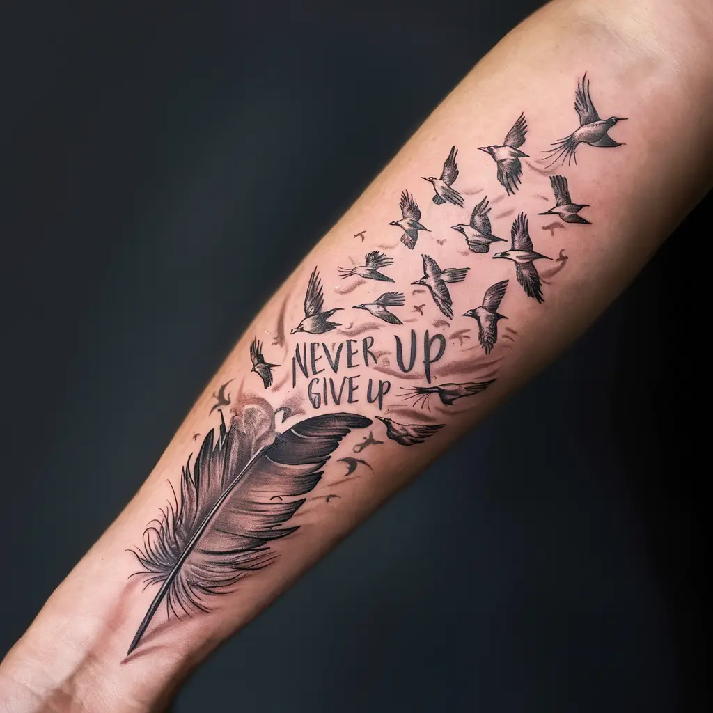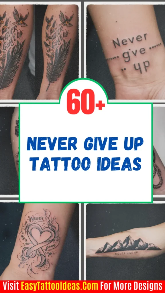“Never give up” tattoos serve as powerful, personal reminders of strength, resilience, and perseverance. Whether you choose a symbol from nature, an animal, or a meaningful phrase, these designs help keep you motivated through life’s challenges.