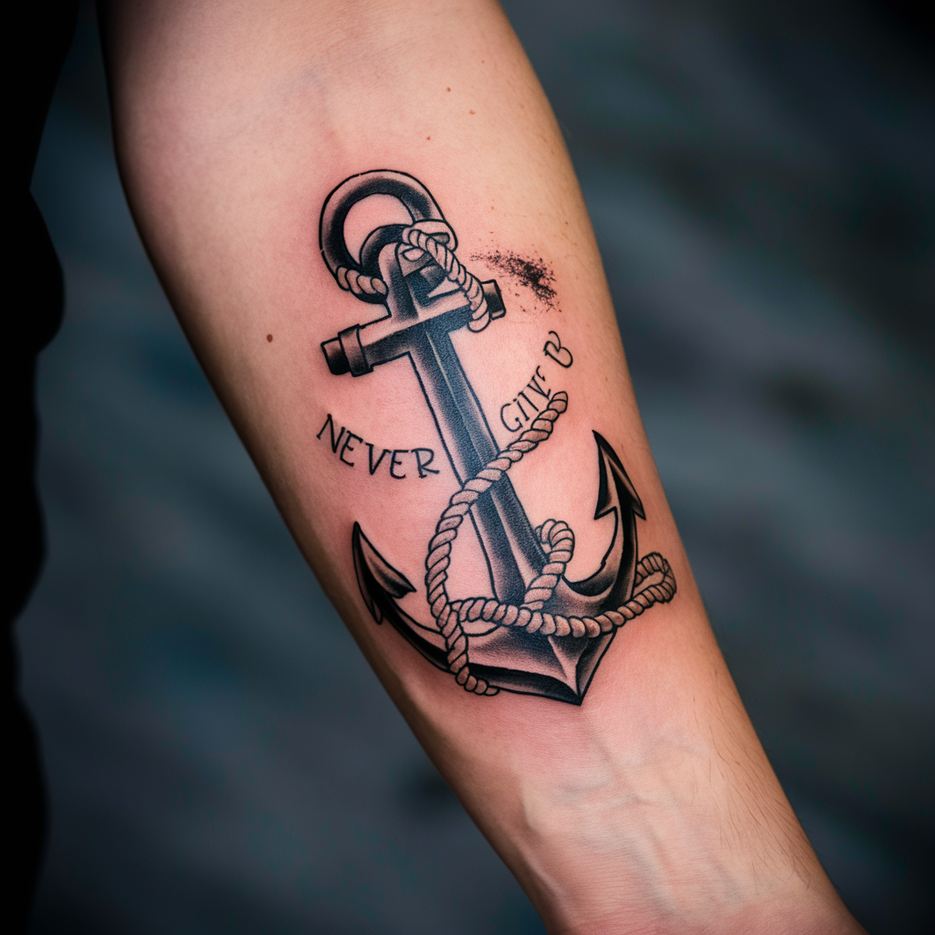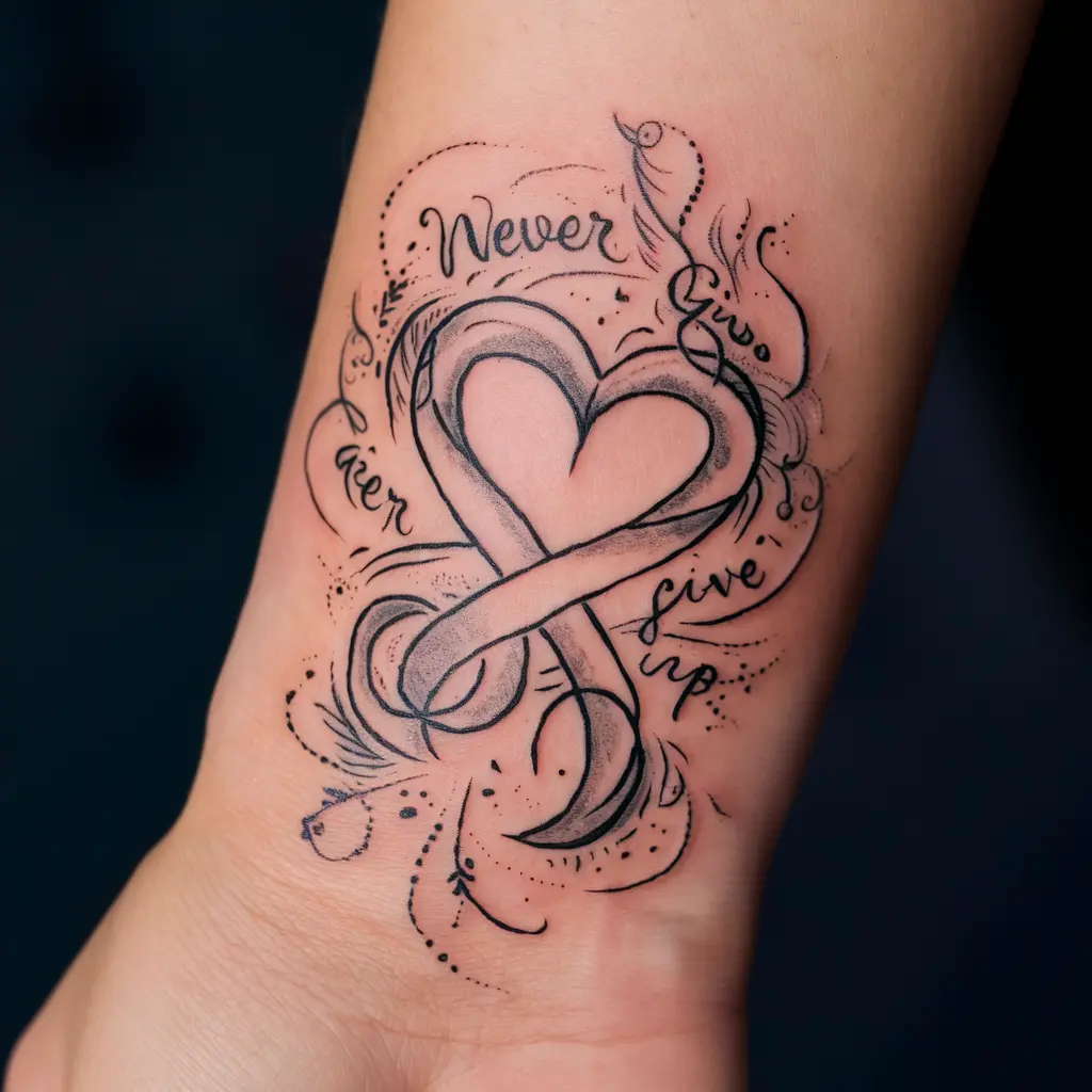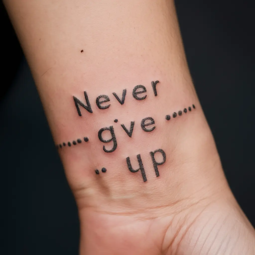 However, there’s a simple phrase that can inspire us all to push forward: “never give up.” This powerful message reminds us that even in our darkest moments, there’s always a reason to keep going. One of the best ways to carry that reminder with you every day is through a tattoo.