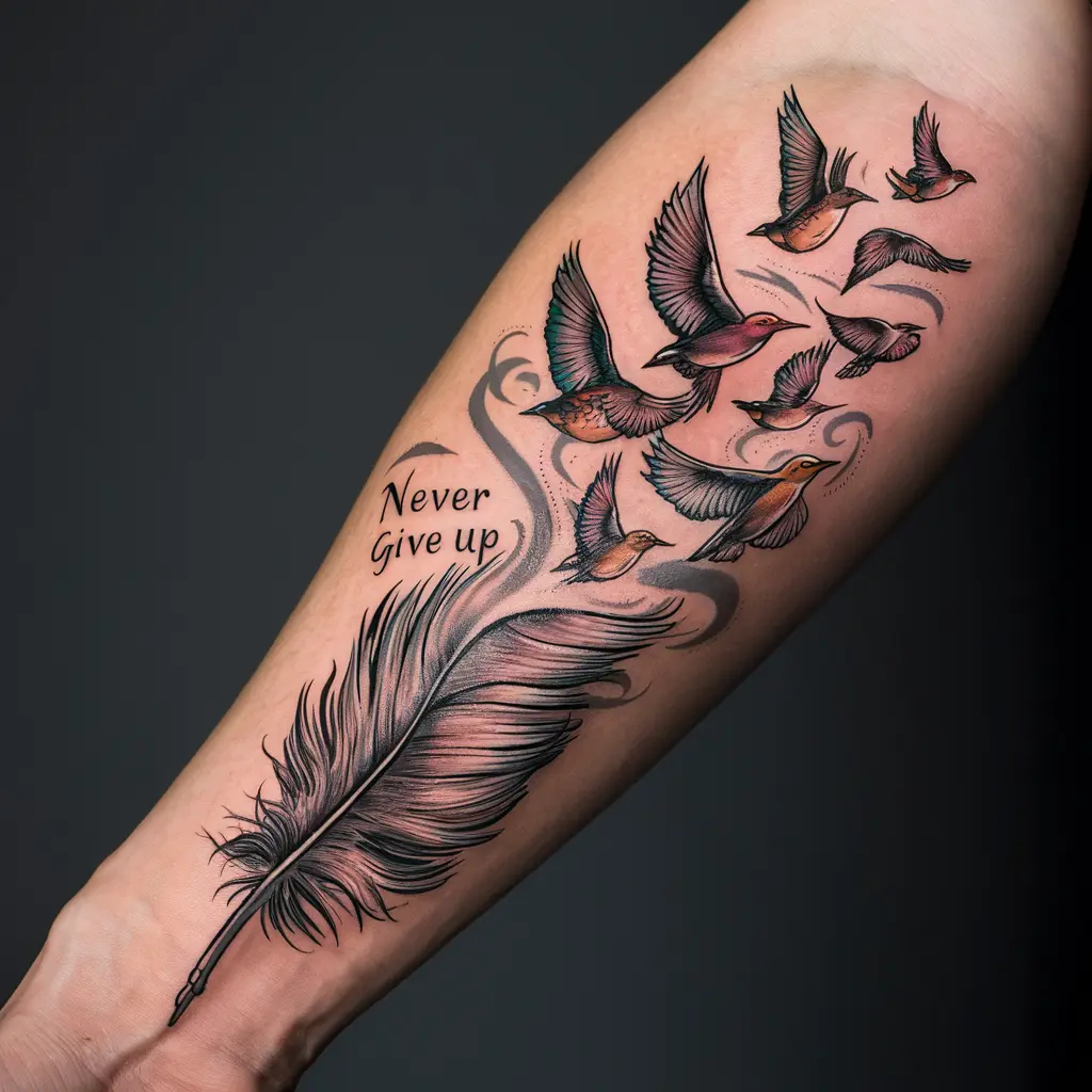 Meaning: A feather represents freedom, and when it turns into flying birds, it symbolizes breaking free from limitations. This tattoo reminds you that you can always soar to new heights.